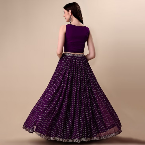 Purple embroidered lehenga choli with dupatta, has leheriya technique and sequinned