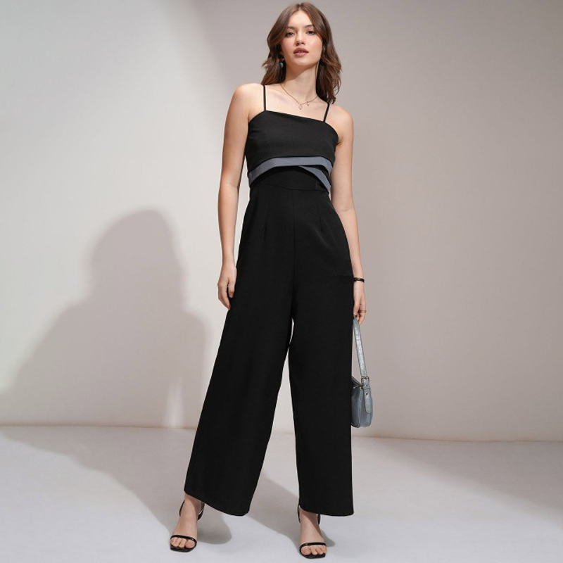 Women Colorblocked Layered Wide Leg Jumpsuit
